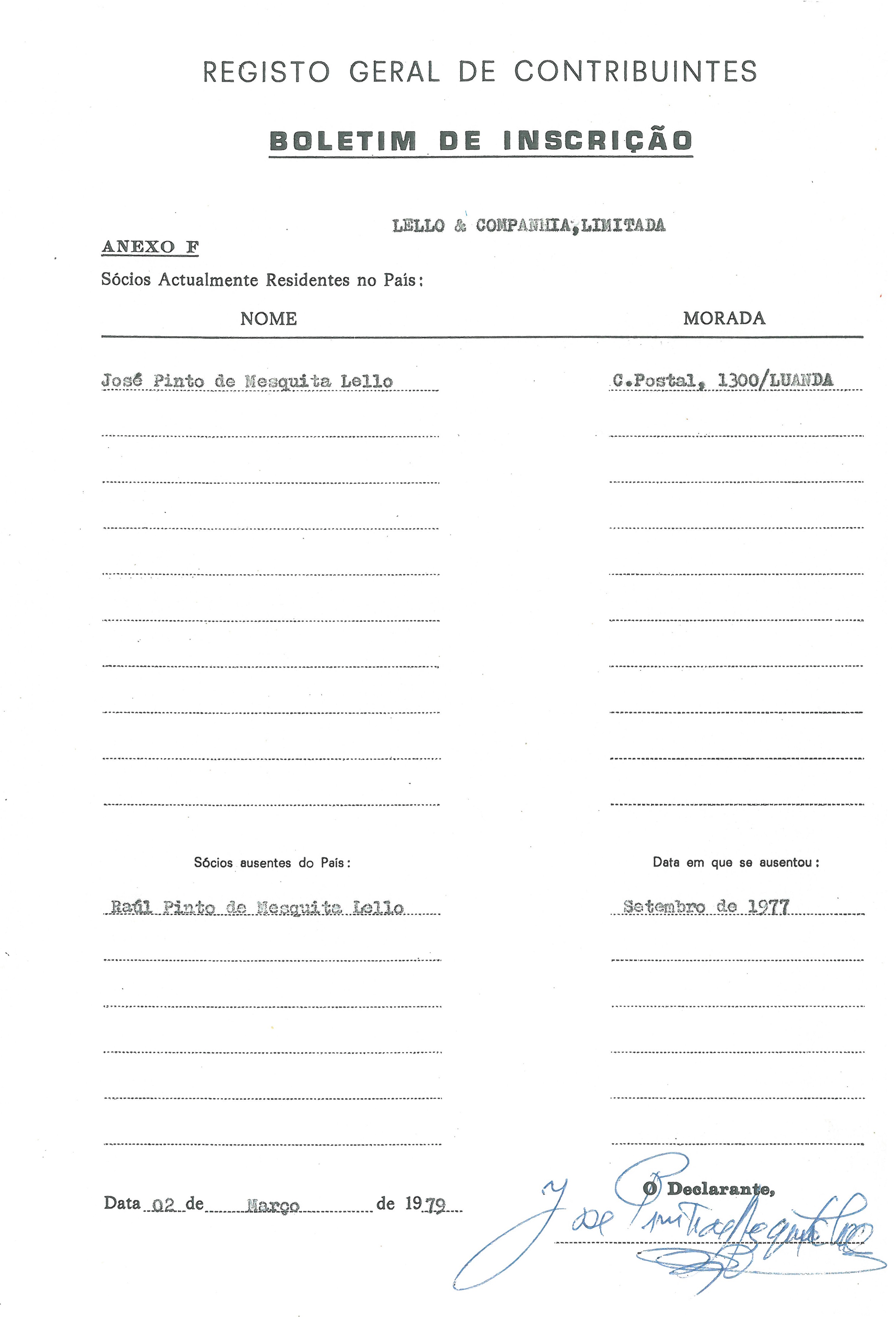 O gerente efectivo da Empresa em Angola foi nomeado Raul Pinto de Mesquita Lello.
